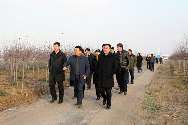 李朝欽一行先后考察了糧食風(fēng)干倉、30大隊(duì)的麥田、海棠科技產(chǎn)業(yè)園、漁場(chǎng)。