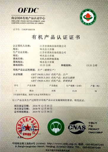 近日,黃海農(nóng)場(chǎng)有限公司欣喜的收到中國(guó)綠色食品發(fā)展中心頒發(fā)的青花菜(西蘭花)綠色食品證書和中國(guó)有機(jī)產(chǎn)品認(rèn)證機(jī)構(gòu)頒發(fā)的有機(jī)產(chǎn)品認(rèn)證證書。至此,黃海已獲得10.1萬畝綠色原料(水稻)標(biāo)準(zhǔn)化生產(chǎn)基地、綠色青花菜和有機(jī)水稻基地三項(xiàng)證書,品牌建設(shè)再添新成果。
