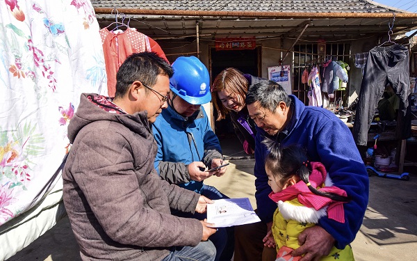 (圖為縣供電公司員工在職工居民家中辦理用戶過(guò)名業(yè)務(wù))