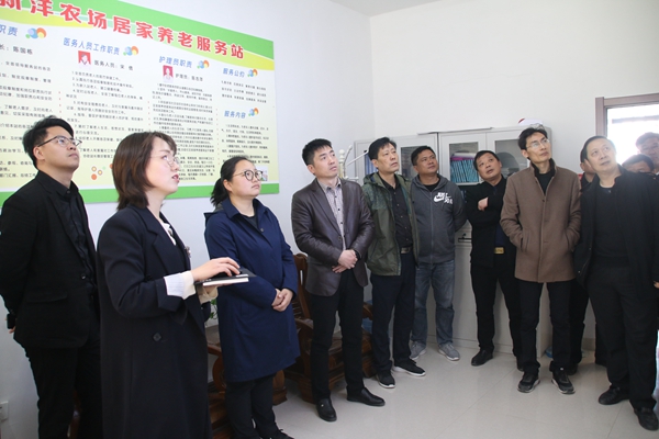 途中,戴學(xué)林簡(jiǎn)要介紹了新洋經(jīng)濟(jì)社會(huì)基本概況,重點(diǎn)就產(chǎn)業(yè)發(fā)展、社會(huì)職能改革、資產(chǎn)資源盤活利用、社區(qū)創(chuàng)新管理、企業(yè)文化建設(shè)等進(jìn)行介紹。他說(shuō),近年來(lái),新洋不斷深化改革,以改革促發(fā)展,加強(qiáng)農(nóng)業(yè)高效精細(xì)化管理,挖掘林苗木生產(chǎn)潛力,盤活存量資產(chǎn),使“死資產(chǎn)”變成“活資源”,經(jīng)濟(jì)發(fā)展呈現(xiàn)良好勢(shì)頭。根據(jù)社會(huì)職能改革要求,圍繞“內(nèi)部分開(kāi)、管辦分離、授權(quán)委托、購(gòu)買服務(wù)”十六字方針,積極穩(wěn)妥推進(jìn)社會(huì)職能改革,進(jìn)展順利。新洋連續(xù)26年蟬聯(lián)省級(jí)文明單位稱號(hào),緊緊抓住江蘇農(nóng)墾新時(shí)代文明實(shí)踐中心建設(shè)試點(diǎn)的機(jī)遇,結(jié)合傳統(tǒng)文化建設(shè)成果,以愛(ài)心超市為載體,志愿者服務(wù)為特色,將新時(shí)代文明實(shí)踐、文明單位創(chuàng)建與精準(zhǔn)幫扶、家政服務(wù)、居民素質(zhì)提升相結(jié)合,大力開(kāi)展大愛(ài)新洋創(chuàng)建活動(dòng),弘揚(yáng)真善美,提高居民幸福指數(shù),不斷豐富大愛(ài)文化內(nèi)涵。同時(shí),以居家養(yǎng)老服務(wù)中心為依托,引進(jìn)智能化管理系統(tǒng),積極探索和滿足老年服務(wù)的深層需求,不斷豐富老年服務(wù)內(nèi)容,積極應(yīng)對(duì)場(chǎng)域老齡化現(xiàn)狀,踐行尊老愛(ài)老敬老的良好風(fēng)尚。