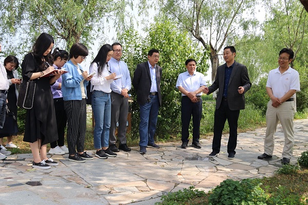 采訪組一行首先來到云水灣濕地公園,邊走邊看邊采訪,大到園區(qū)規(guī)劃、小到一花一果,記者們都做了詳細(xì)了解。農(nóng)場公司黨委書記劉衛(wèi)華著重介紹了江蘇省第十二屆園博會的申辦和當(dāng)前推進(jìn)情況。劉衛(wèi)華介紹,在農(nóng)墾舉辦省園博會,是江蘇農(nóng)墾對習(xí)近平總書記“綠水青山就是金山銀山”生態(tài)發(fā)展理念的具體落實(shí),是對“創(chuàng)新、協(xié)調(diào)、綠色、開放、共享”的發(fā)展思路生動實(shí)踐。云臺農(nóng)場公司在園博會籌備過程中,將不斷注重場域環(huán)境與園區(qū)環(huán)境、場風(fēng)文明與生態(tài)文明的協(xié)調(diào),引領(lǐng)居民綠色生活方式,擴(kuò)大開放程度,優(yōu)化公共空間。園區(qū)所展示的生物多樣性、自然生態(tài)景觀和云臺優(yōu)美舒適的人居環(huán)境相輔相成,體現(xiàn)了人與自然和諧共存的觀念,從而推進(jìn)了云臺生態(tài)宜居共享發(fā)展的現(xiàn)代農(nóng)業(yè)發(fā)展進(jìn)程。云臺農(nóng)場在不久的未來勢必成為連云港市的“會客廳”,云臺農(nóng)場公司也將把園博園的建設(shè)作為城市發(fā)展進(jìn)程的重要景觀,依據(jù)功能布局、展園布置、交通銜接和設(shè)施配套,集中規(guī)劃建設(shè)一大批公共文化服務(wù)設(shè)施和服務(wù)舉措,為全市人民提供集休閑、娛樂、健身于一體的大型公共活動空間,增強(qiáng)廣大居民群眾的歸屬感、獲得感。