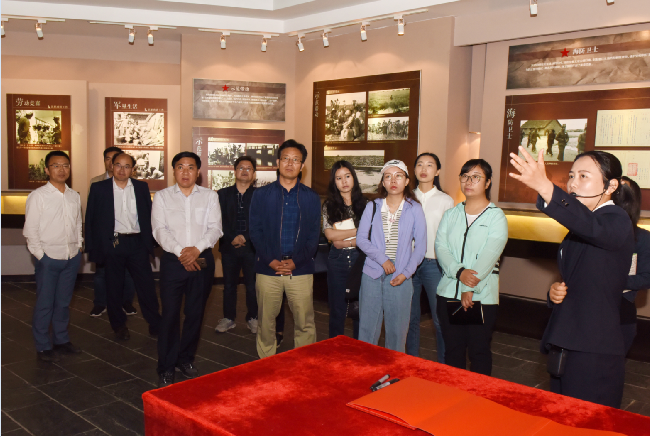 雖然新聞媒體記者一行在淮海農(nóng)場有限公司參觀的時間較短,但通過參觀,讓采訪組一行對農(nóng)場軍墾傳統(tǒng)文化感觸頗深,感受到了軍墾文化的深刻內(nèi)涵。他們認為淮海的軍墾傳統(tǒng)文化的素材極為豐富,軍墾文化的收集、保護和展示工作做得很好,其內(nèi)在的教育意義更濃,是一個非常寶貴、不可多得的軍墾傳統(tǒng)文化傳承教育的史實資料場館。圖為“農(nóng)墾改革發(fā)展百場行”墾區(qū)巡禮采訪組一行在淮海農(nóng)場有限公司參觀時的鏡頭。