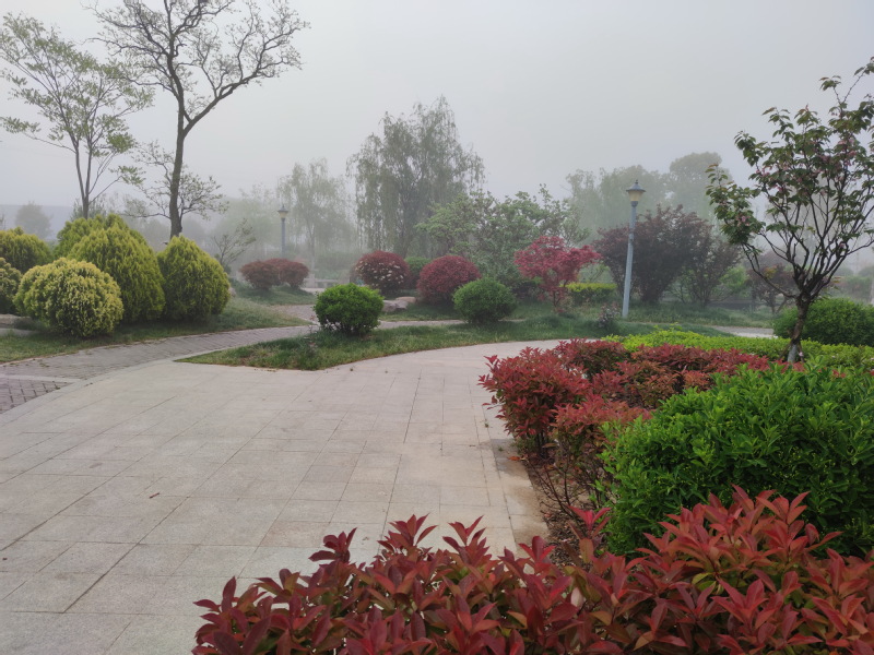 曙光初露之時迎五一健身跑的習(xí)慣就讓我早起。沒想到今天的晨霧漫無邊際地籠罩著淮海大地,雖然不是很濃的那種,但讓淮海的建筑和景色,在霧氣中顯得朦朧分外寧靜。此時照例又經(jīng)過農(nóng)場公園、蘇北灌溉總渠上快速地散步,見到了霧氣下農(nóng)場那些美麗的風(fēng)景,這些風(fēng)景與水霧連成一體,特別是遠處的景色與水霧連著、搭著地,又茫茫然,茫茫大霧越濃時,遠處又是一遍模糊,似乎這些風(fēng)景成了我眼前夢幻般的仙境。