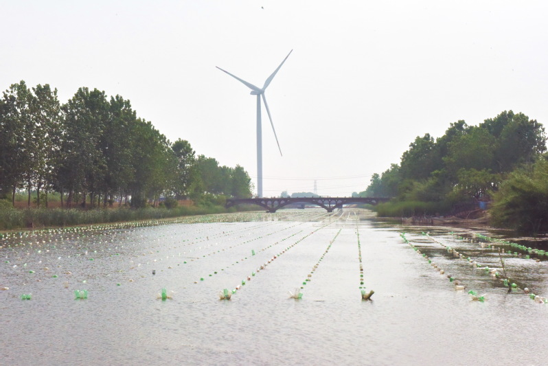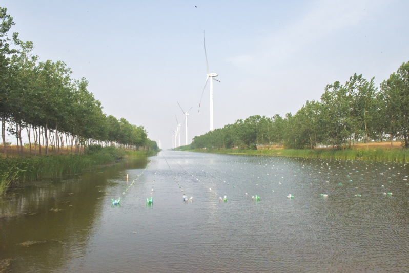 在貫穿淮海農(nóng)場(chǎng)三分場(chǎng)社區(qū)的北八灘河上,碧藍(lán)的天空、轉(zhuǎn)動(dòng)的風(fēng)車、搖曳的綠樹(shù)、碧綠的河水,以及鋪滿整個(gè)河道又整齊劃一的養(yǎng)珍珠設(shè)施,讓整個(gè)河道風(fēng)景突顯在你的眼前,讓人感到的不僅是兩岸層林盡染,水色澄靜如練的美景,構(gòu)成一幅絕美的畫(huà)面。更讓人感嘆到產(chǎn)業(yè)經(jīng)濟(jì)在農(nóng)場(chǎng)區(qū)域發(fā)展而帶來(lái)的魅力,也只不過(guò)用了沒(méi)幾年時(shí)間,河道養(yǎng)蚌在這時(shí)卻成了人們眼前不斷擴(kuò)大的產(chǎn)業(yè),讓生態(tài)河道發(fā)揮出較好的經(jīng)濟(jì)效益?,F(xiàn)在把我看到的美景風(fēng)光呈現(xiàn)出來(lái),讓大家一同感受下養(yǎng)蚌產(chǎn)業(yè)給大家?guī)?lái)的視覺(jué)風(fēng)暴,在這里欣賞優(yōu)美的河岸風(fēng)景。