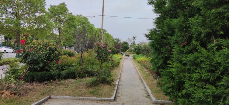 總長1公里的以香樟樹、紫薇、石楠等上中下融合一體的淮海路是路邊公園區(qū)的重要一景。淮海路緊密聯(lián)結(jié)職工休閑體育運動廣場、文化廣場、淮海公園,沿淮海路北側(cè)與微型公園間,建成了3米左右的人行步道,與主路上的香樟樹、微型公園中一路沿伸出來的合歡樹,形成了林下綠鏈,讓大家沿著樹蔭走,可以起到較好的遮陽和觀賞效果。