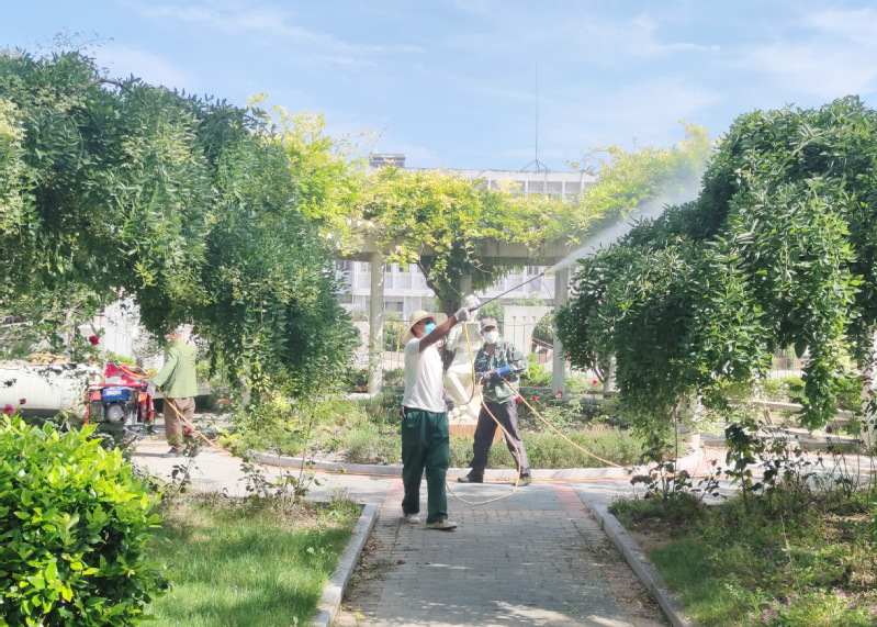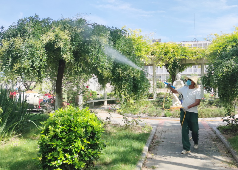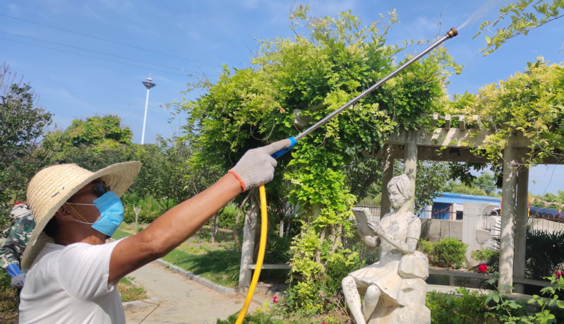 夏季氣溫高,綠化苗木生長也快,此時也正是農(nóng)場綠化苗木易發(fā)病蟲害集中爆發(fā)期,淮海農(nóng)場環(huán)衛(wèi)綠化所根據(jù)農(nóng)場社區(qū)綠化苗木的生長情況和病蟲害預(yù)測結(jié)果,本著抓早治小節(jié)省成本的原則,對綠化苗木上的病蟲害防治采取了以預(yù)防為主,在苗木病蟲害最容易消滅的時候及時處理,組織環(huán)衛(wèi)綠化所的員工及時動用機械力量進行噴灑藥水,重點加強食葉蟲、蚧殼蟲、蚜蟲、葉甲蟲及銹病、白粉病等夏季常見病蟲害防治,有效防范了綠化苗木病蟲害的集中爆發(fā)。下一步環(huán)衛(wèi)綠化所將繼續(xù)密切關(guān)注農(nóng)場區(qū)域綠化苗木上的病蟲害發(fā)展情況,根據(jù)發(fā)展勢態(tài)及時進行二次處置,以保障農(nóng)場區(qū)域綠化苗木的正常生長。