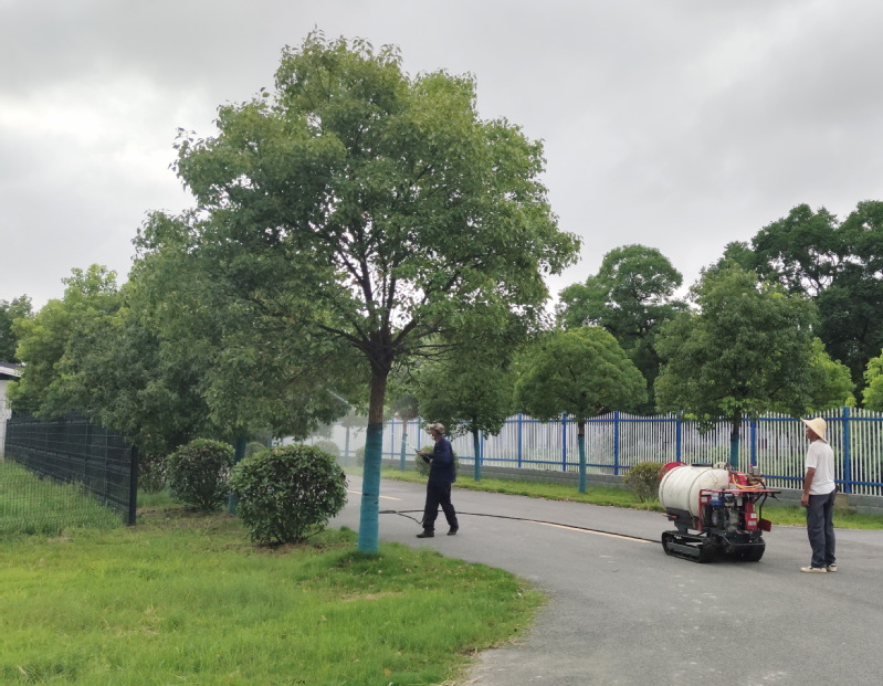 隨著盛夏季節(jié)的來(lái)臨,不僅樹木生長(zhǎng)旺盛,就連樹木蟲害也變得厲害了許多,甚至許多樹木的枝葉上已經(jīng)出現(xiàn)了珠網(wǎng)式的蟲窩,尤其是法國(guó)梧桐、合歡,紫藤等樹種。樹木被蟲侵害不僅影響樹木的正常生長(zhǎng),而且 也破壞了農(nóng)場(chǎng)小城鎮(zhèn)的綠化形象和職工居民的出行 觀感。連日來(lái),淮海農(nóng)場(chǎng)社區(qū)綠化環(huán)衛(wèi)所組織綠化養(yǎng)護(hù)人員,他們推著高壓水泵車對(duì)農(nóng)場(chǎng)各區(qū)域的行道樹逐一進(jìn)行病蟲害彌霧防治,噴灑的藥劑也為低毒高效型的農(nóng)藥品種,確保在能有效殺滅害蟲的同時(shí),對(duì)農(nóng)場(chǎng)的環(huán)境盡可能提供高效的保護(hù)。圖為農(nóng)場(chǎng)社區(qū)綠化環(huán)衛(wèi)所的員工在對(duì)清風(fēng)路旁的樹木進(jìn)行高壓噴霧治蟲時(shí)的鏡頭。