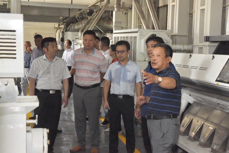 在淮海公司潘長干陪同客人一行參觀了糧食生產(chǎn)加工設(shè)備、倉儲、物流、烘干等現(xiàn)場。潘長干詳細向來參觀的客人介紹了公司的糧食生產(chǎn)加工儲藏銷售和市場占有率及品牌建設(shè)情況,并對公司生產(chǎn)的相關(guān)品牌產(chǎn)品,潘長干饒有興趣地向客人進行了介紹。復(fù)興圩農(nóng)場客人一行對淮海米廠的機械化生產(chǎn)規(guī)模、渠星品牌的生產(chǎn)包裝及發(fā)展前景和取得的市場成績表示贊賞。認(rèn)為淮海公司擁有完善的服務(wù)和管理體系,創(chuàng)新能力強,員工素質(zhì)高,企業(yè)發(fā)展后勁大。圖為復(fù)興圩客人一行在淮海公司生產(chǎn)流水線上考察。