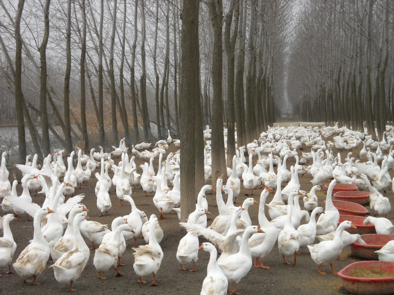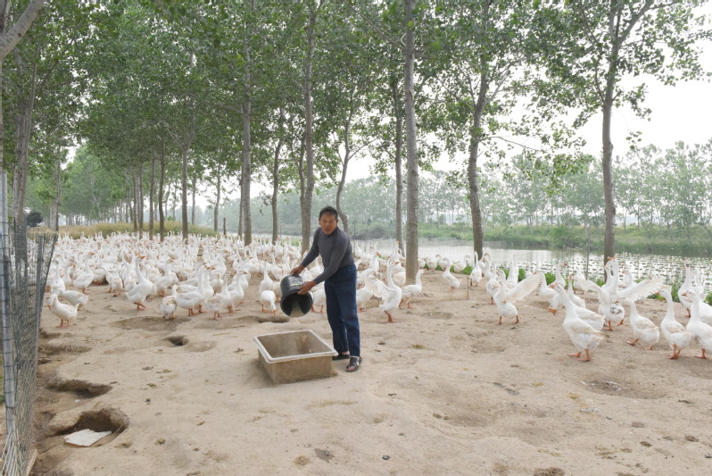 利用林地和水面圈養(yǎng)鵝,可以以林下周邊的草和林旁的水面養(yǎng)鵝,鵝糞肥林,林地養(yǎng)鵝是一種循環(huán)型生態(tài)的發(fā)展模式。