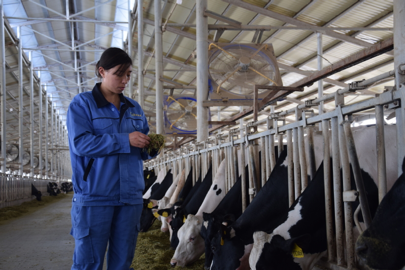 2020年,因?yàn)樾滦凸跔畈《痉窝渍谒僚叭珖?guó),肉蛋奶又是居民生活必需品。新冠肺炎疫情發(fā)生以來,養(yǎng)殖業(yè)發(fā)展遇到新的困難,作為一名黨員,祝英告誡自己不能退縮,她主動(dòng)沖在生產(chǎn)第一線,為職工宣傳防疫知識(shí),與同事們一起放棄春節(jié)休假,一直奮戰(zhàn)在抗疫第一線,讓“小團(tuán)隊(duì)”發(fā)揮“大作用”。疫情就是命令,防控就是責(zé)任。戰(zhàn)“疫”號(hào)角吹響后,祝英坦言,“作為一名黨員,抗擊疫情,我必須時(shí)刻堅(jiān)守在第一線。”在困難面前,東旺公司生產(chǎn)幾乎沒有受到影響,產(chǎn)量穩(wěn)定、牛群健康狀況良好,這與一百多名與祝英一樣平凡的“逆行者”的努力是分不開的。一個(gè)黨員就是一面旗幟,一個(gè)支部就是一座堡壘,祝英用行動(dòng)詮釋了一名共產(chǎn)黨員的初心和使命,展現(xiàn)一名新時(shí)代女性的責(zé)任與擔(dān)當(dāng),在平凡的崗位盡展巾幗風(fēng)采。(圖為祝英查看飼料情況)