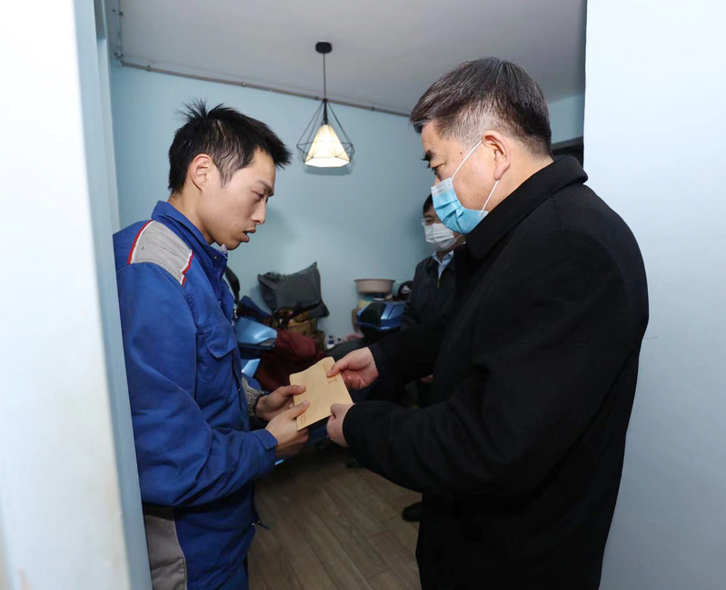 在困難職工張新輝的出租房中,魏紅軍詳細(xì)詢問了他手術(shù)后的身體狀況和工作生活情況,在聽聞張新輝家庭收入微薄、自身還要負(fù)擔(dān)妹妹的學(xué)費時,對其勇?lián)彝ヘ?zé)任表示肯定,叮囑蘇舜公司要繼續(xù)做好幫扶工作,將企業(yè)的關(guān)懷和溫暖送到困難職工的心坎上。隨后,魏紅軍來到蘇舜公司,慰問了一位替父治病已負(fù)債百萬的困難職工陶鋮康,在仔細(xì)詢問其父病情和家庭收入后,表示組織上將會持續(xù)關(guān)心,鼓勵他積極樂觀面對生活,增強(qiáng)戰(zhàn)勝困難的勇氣和信心。