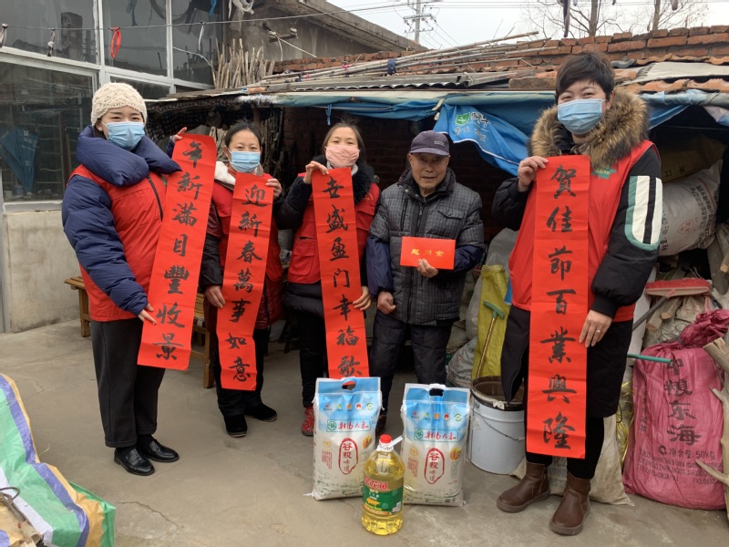 活動(dòng)中,朱玉兵全神貫注地壓紙、沾墨、起筆、收筆,一起一落之間,一幅幅楷書(shū)、行書(shū)、草書(shū)大紅春聯(lián)完美呈現(xiàn),濃濃的墨香增進(jìn)了黨員、老人們間的鄰里之情。當(dāng)我們捧出春聯(lián)遞給轄區(qū)老年朋友時(shí),他們?nèi)绔@至寶,一個(gè)個(gè)臉上樂(lè)開(kāi)了花。一位老同志說(shuō):“ 這樣的春聯(lián)貼在門上感覺(jué)更有意義?!彼痛郝?lián)的同時(shí),中心工作人員還積極向居民宣傳疫情防控知識(shí),提醒居民戴口罩、不聚眾、勤洗手,若有外地返場(chǎng)人員要及時(shí)向社區(qū)報(bào)備等內(nèi)容,全力提升轄區(qū)居民的安全感、幸福感、獲得感。