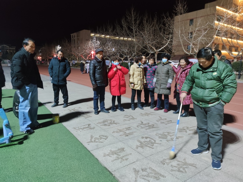 說(shuō)起寫(xiě)“地書(shū)”的好處,田海燕說(shuō),他每天晚上都要在廣場(chǎng)上、公園里或是路道邊練習(xí)一個(gè)多小時(shí),這樣既有利于保健養(yǎng)生,也有利于益智養(yǎng)性,在回憶名人詩(shī)詞和偉人風(fēng)采中,展現(xiàn)博大精深的中華文化,也得到了眾多觀看者的稱頌,這可謂是一舉多得。