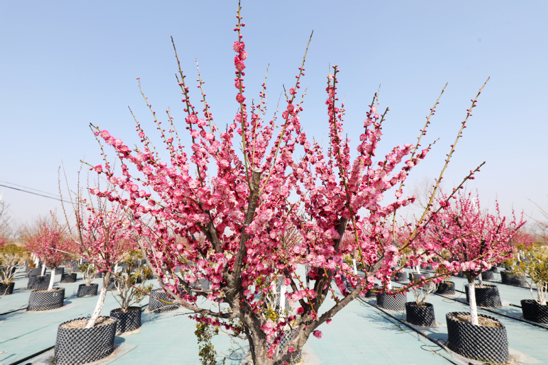 “這片紅梅共有300多棵,其樹形、樹冠和花色,都是我們精心挑選和培育的,目前的市場(chǎng)價(jià)值也逐漸凸顯。”新洋林業(yè)公司負(fù)責(zé)人高翔介紹。