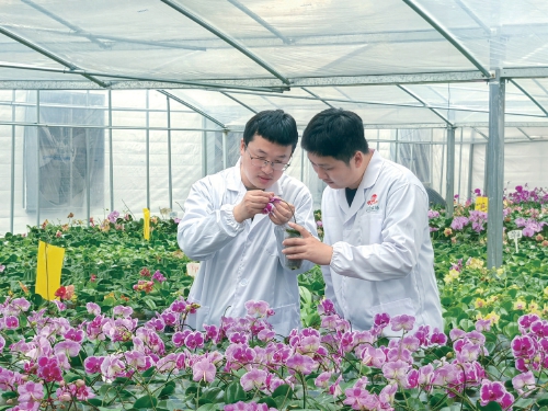圖為農(nóng)場技術(shù)人員正在查看蝴蝶蘭種苗。 受訪者供圖