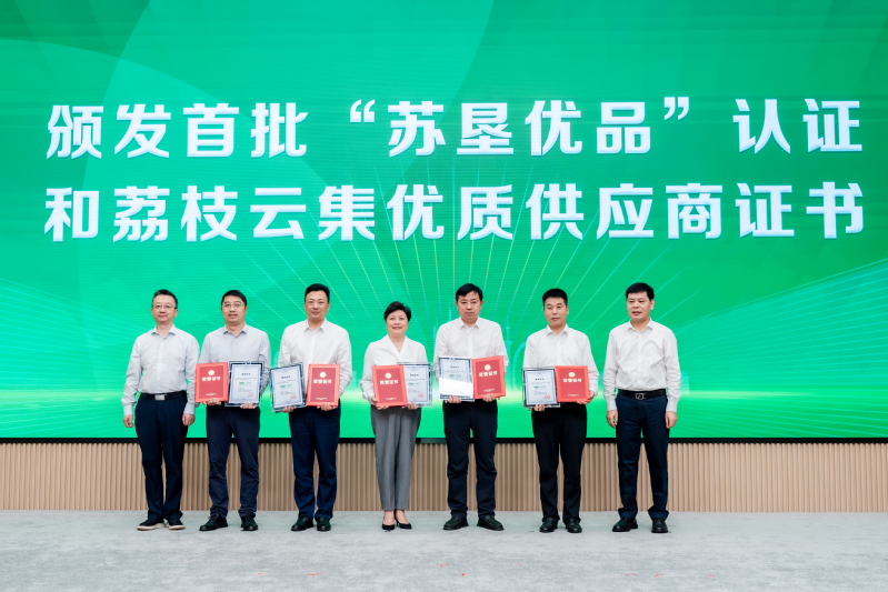 現(xiàn)場(chǎng)還舉行了“蘇墾優(yōu)品”認(rèn)證證書及“荔枝云集優(yōu)質(zhì)供應(yīng)商”證書頒發(fā)儀式。江蘇省農(nóng)墾米業(yè)集團(tuán)有限公司、蘇州蘇墾現(xiàn)代農(nóng)業(yè)發(fā)展有限公司、金太陽(yáng)糧油股份有限公司、江蘇農(nóng)墾漁業(yè)科技有限公司、江蘇農(nóng)墾乳業(yè)科技有限公司五家企業(yè)獲得首批授權(quán)。