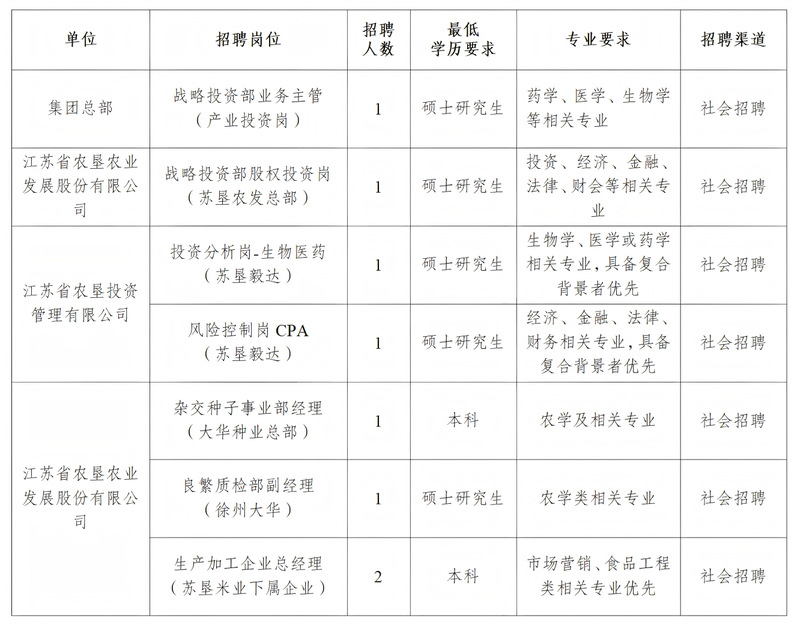 江蘇農(nóng)墾2025年秋季集中招聘公告(二)