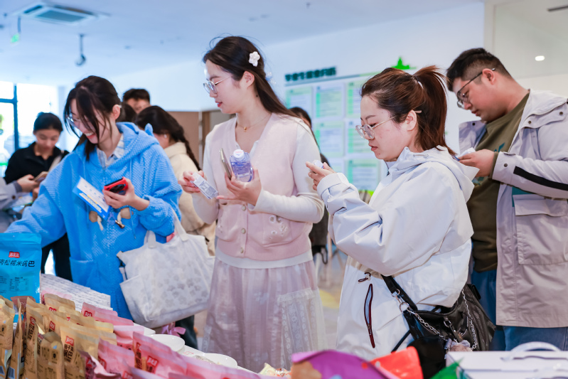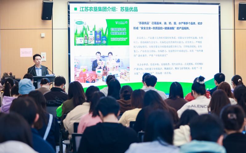 宣講會(huì)現(xiàn)場(chǎng),工作人員還特意帶來多款江蘇農(nóng)墾的產(chǎn)品與同學(xué)們分享。蘇墾乳業(yè)的簡(jiǎn)蘇A2β原生高鈣純牛奶、蘇墾米業(yè)的蘇米滋鍋巴,以及新曹農(nóng)場(chǎng)即將上市的玉谷香鹵蛋,都收獲一致好評(píng)。這些實(shí)實(shí)在在的產(chǎn)品,讓同學(xué)們直觀感受到江蘇農(nóng)墾對(duì)質(zhì)量與安全的追求。