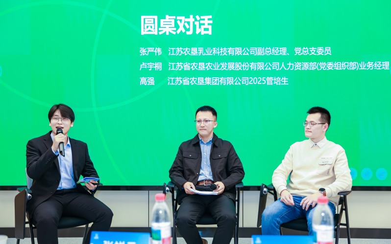 在“從校園人到農(nóng)墾人”成長(zhǎng)分享環(huán)節(jié),南京農(nóng)業(yè)大學(xué)校友代表蘇墾乳業(yè)副總經(jīng)理張嚴(yán)偉、蘇墾農(nóng)發(fā)人力資源部業(yè)務(wù)經(jīng)理盧宇桐、集團(tuán)公司2025屆管培生高強(qiáng)分別講述了他們?cè)诮K農(nóng)墾的職業(yè)軌跡與心路歷程。張嚴(yán)偉更結(jié)合自己擔(dān)任面試官的經(jīng)驗(yàn),向?qū)W弟學(xué)妹送出“自信、真誠、專業(yè)”六字面試秘籍,并鼓勵(lì)大家堅(jiān)守農(nóng)業(yè)人的理想與初心。