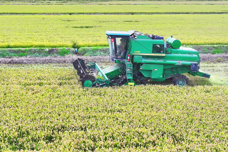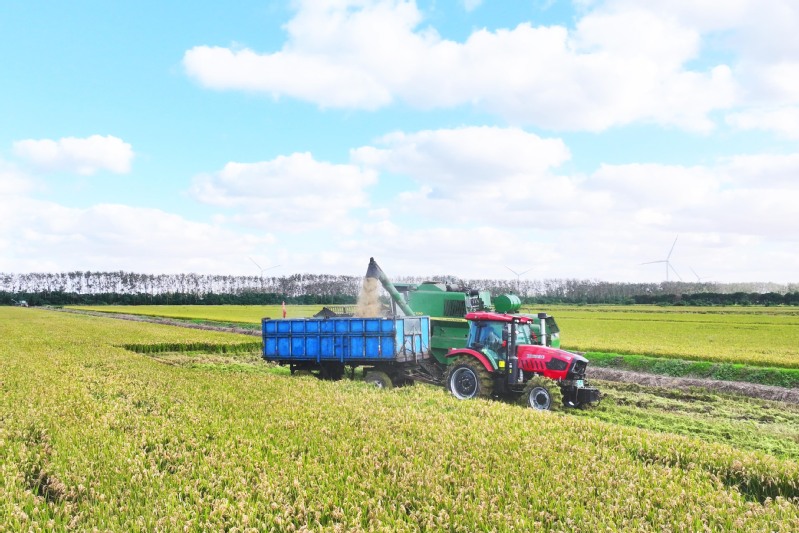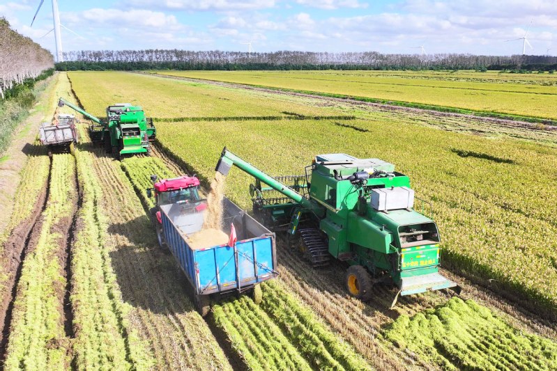 學(xué)習(xí)強國|鹽城射陽:晴日搶收戰(zhàn)金秋 8萬畝水稻收割全速推進