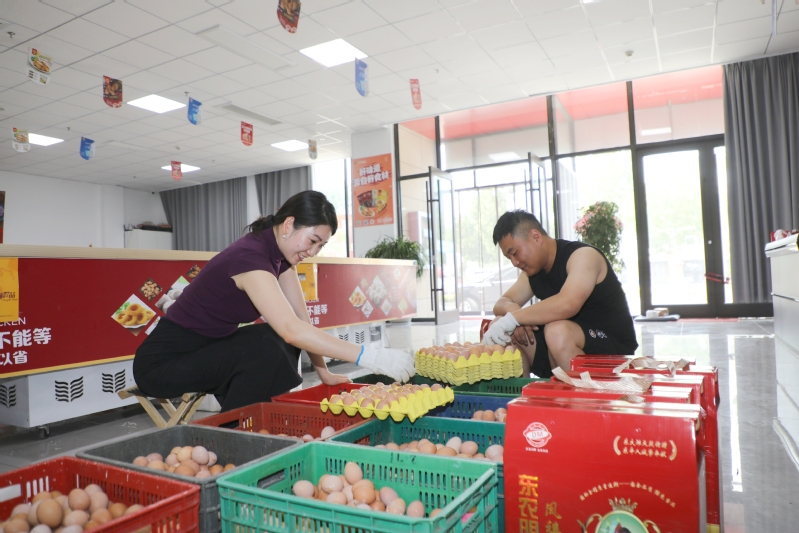 近日,東辛農(nóng)場首批自營養(yǎng)殖的初生蛋一上線就備受追捧,線上預(yù)約通道開啟僅2小時,330斤初生蛋就被搶訂一空,上演了“秒搶”場面。圖為工作人員正在分揀打包初生蛋。
