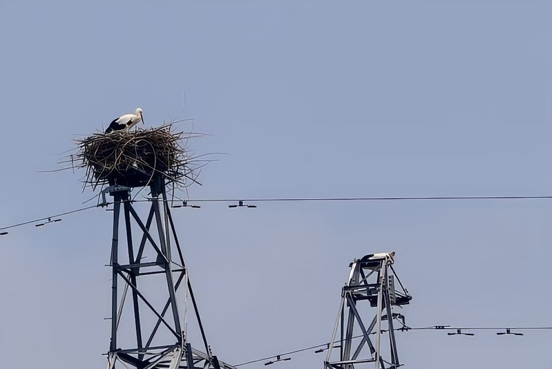 在白馬湖農(nóng)場光伏項目基地附近30多米高的輸電鐵塔頂端,有著“鳥中國寶”之稱的國家一級重點保護野生動物東方白鸛,正站在鳥巢中精心照顧兩只幼鳥,這和諧的一幕不僅吸引了附近居民和鳥類愛好者的關(guān)注,也成了白馬湖農(nóng)場生態(tài)環(huán)境持續(xù)改善的有力見證。