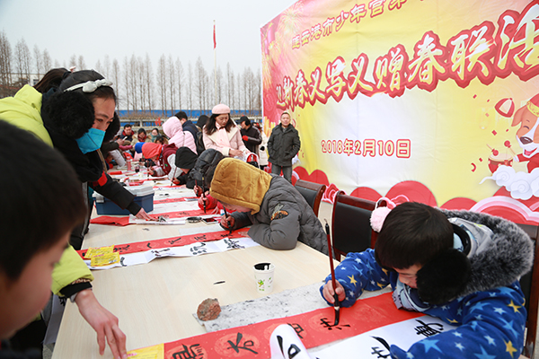 2月10日早上,由市少年宮主辦、少年宮崗埠分校協(xié)辦的“迎新春義寫義贈(zèng)春聯(lián)”活動(dòng)在市少年宮崗埠分校舉行。來自少年宮書法班近20名師生參加了本次活動(dòng)。